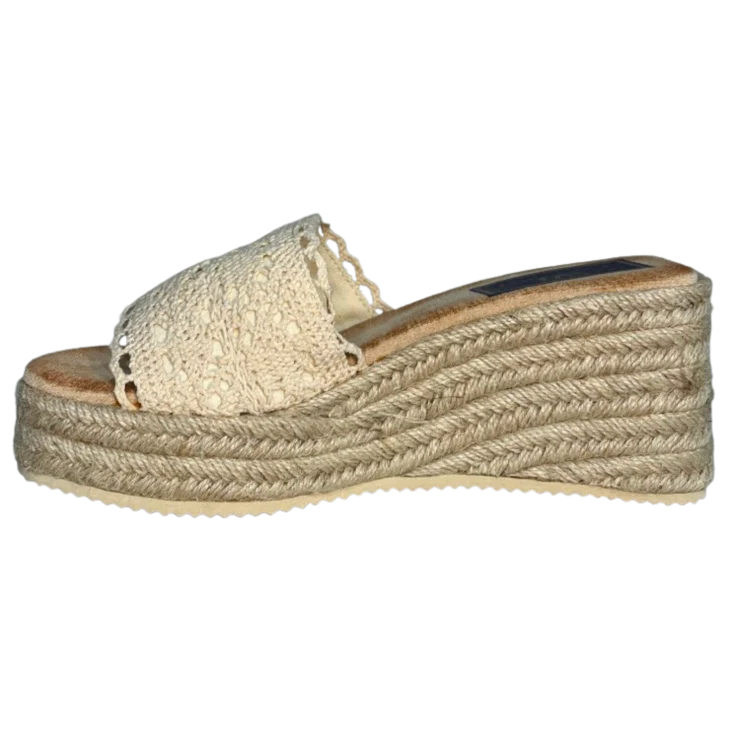 El yute trenzado evoca una textura rústica cálida que invita al tacto. El tono apricot ilumina con suavidad tus looks veraniegos sin resultar estridente. Al calzarla, la plantilla memory foam abraza el pie y amortigua cada paso con una sensación mullida, mientras la cuña mantiene firmeza adicional sin perder ligereza.