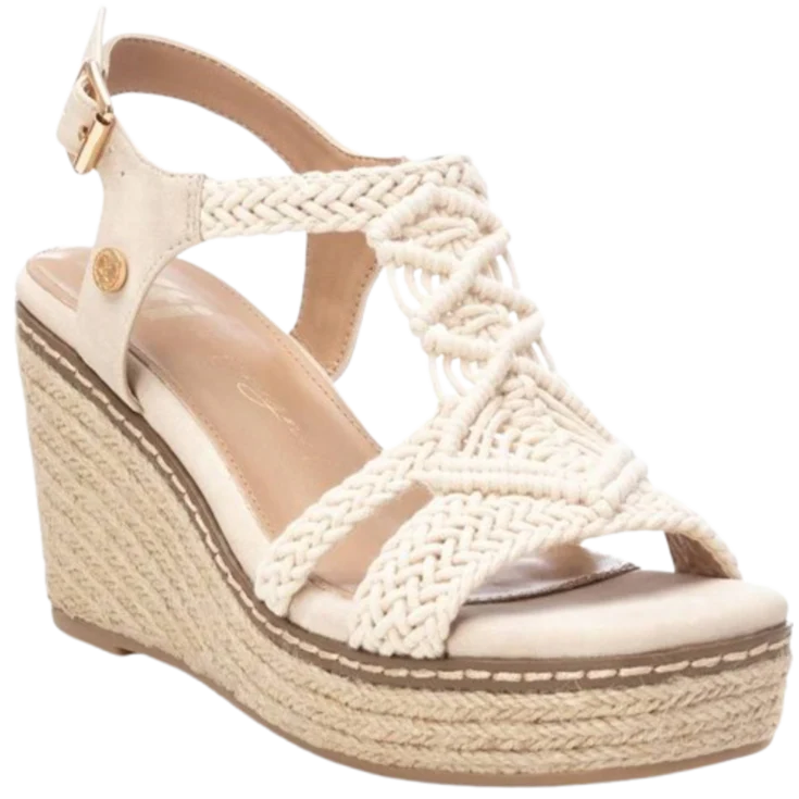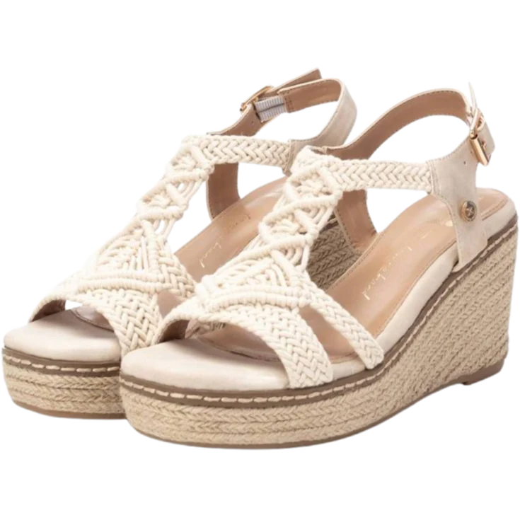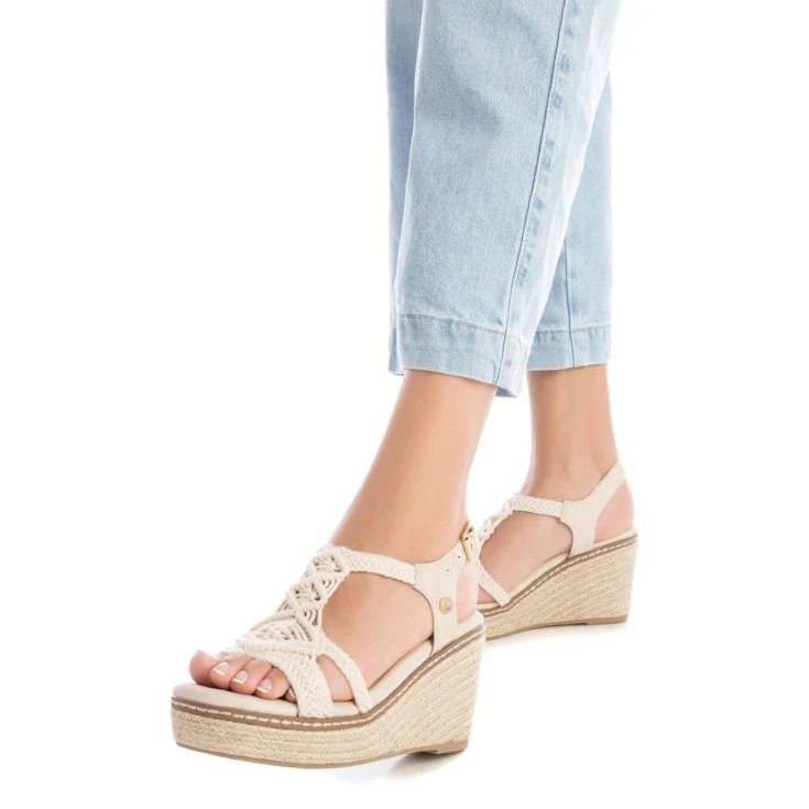 Añade un toque fresco y elegante a tu estilo con la Sandalia Cuña Textil Hielo XTI 142834. Su diseño de tiras trenzadas en textil aporta un aire natural y sofisticado, ideal para los días soleados. El cierre con hebilla ajustable garantiza un ajuste perfecto, mientras que la plataforma y la cuña de esparto le dan un toque veraniego y versátil.
