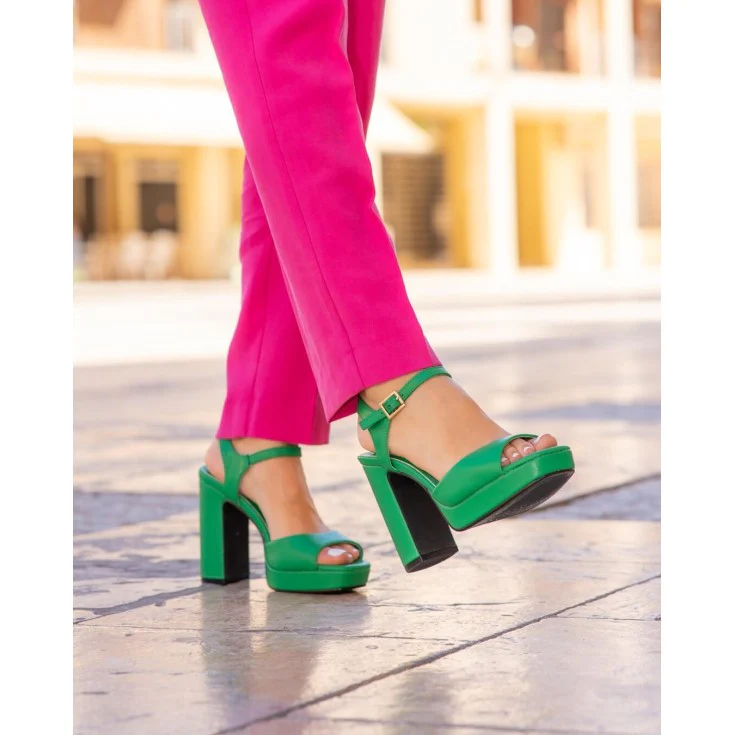 Este tacón alto combina un acabado refinado con un color verde que destaca sin recargar. Su silueta estilizada aporta altura y presencia, mientras sus detalles de calidad garantizan que brille tanto tu look como tu confianza.