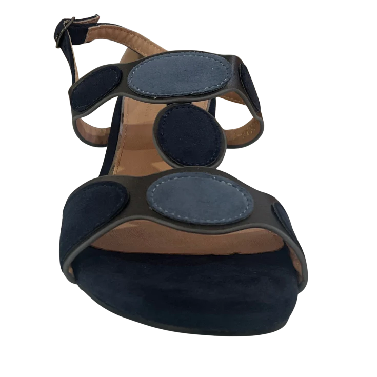 Elegancia serena con un toque contemporáneo. La Sandalia Fiesta Mariona Marino combina la sofisticación del azul marino con un diseño de líneas suaves y detalles circulares que aportan personalidad sin excesos. Perfecta para eventos, celebraciones o looks formales que buscan distinción y comodidad en equilibrio.