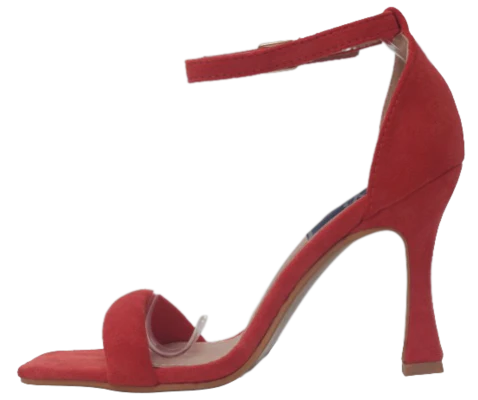 El acabado antelina rojo absorbe la luz con intensidad, proyectando un brillo elegante que realza el movimiento del pie. Al tacto, la textura se siente aterciopelada y envolvente. La estructura del tacón y la plataforma suavizan la inclinación, permitiendo caminar con firmeza sin dejar de sentir estilo.