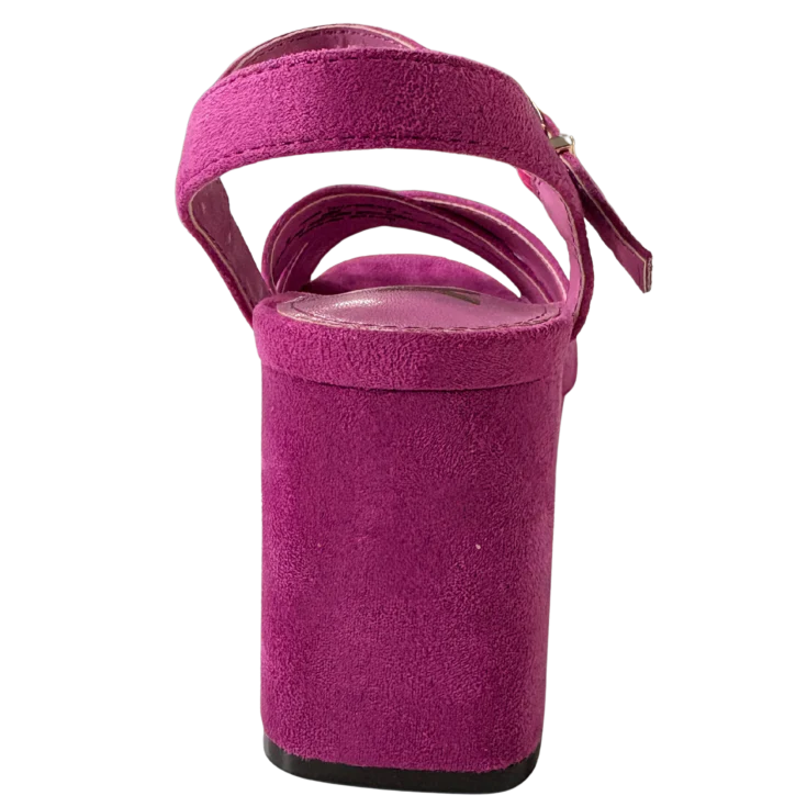 El tacto aterciopelado de la antelina envuelve el pie con suavidad, mientras el color fucsia vibrante capta todas las miradas y realza cualquier look de fiesta. La combinación de plataforma y tacón ancho proporciona una pisada firme, estable y sorprendentemente cómoda desde el primer paso.