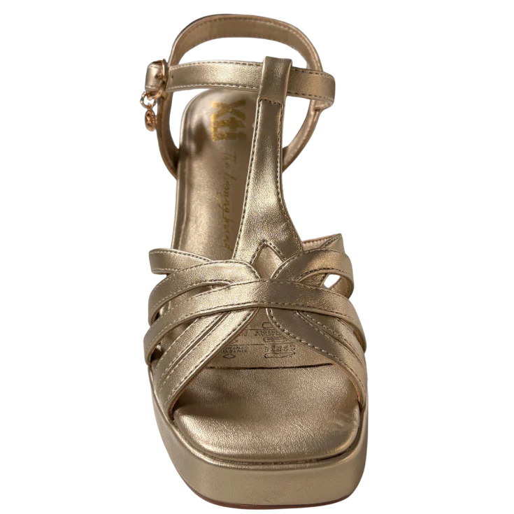 Brillo, elegancia y comodidad en perfecta armonía. La Sandalia Fiesta XTI Color Oro está diseñada para realzar tus looks más especiales con un toque sofisticado, femenino y actual, sin renunciar a la estabilidad y el confort que necesitas para disfrutar cada momento.