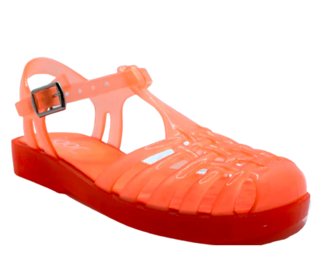 Descubre esta vibrante sandalia de goma color “naranja flúor” diseñada para días de sol, agua y movimiento sin límites. Su corte tipo cangrejera y material impermeable la convierten en el calzado ideal para quienes buscan estilo veraniego y funcionalidad.