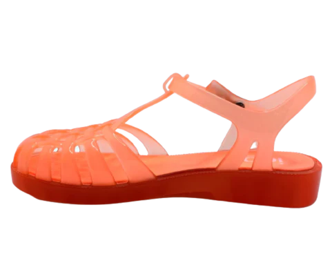 ● Diseño tipo cangrejera en tono naranja flúor traslúcido, llamativo y moderno.