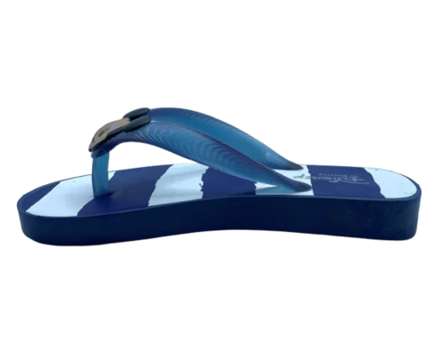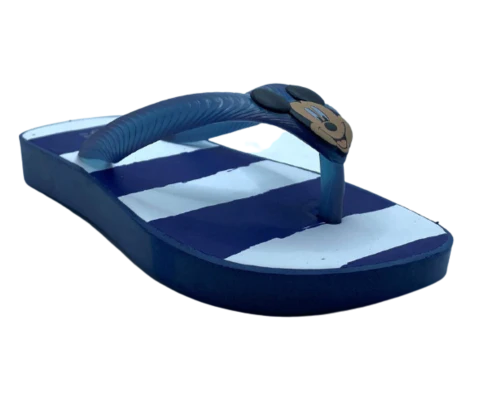 Al calzarla, siente cómo la goma envolvente abraza suavemente el pie del niño, permitiendo que chapotee sin molestias. El azul marino aporta una sensación de frescura y aventura acuática.