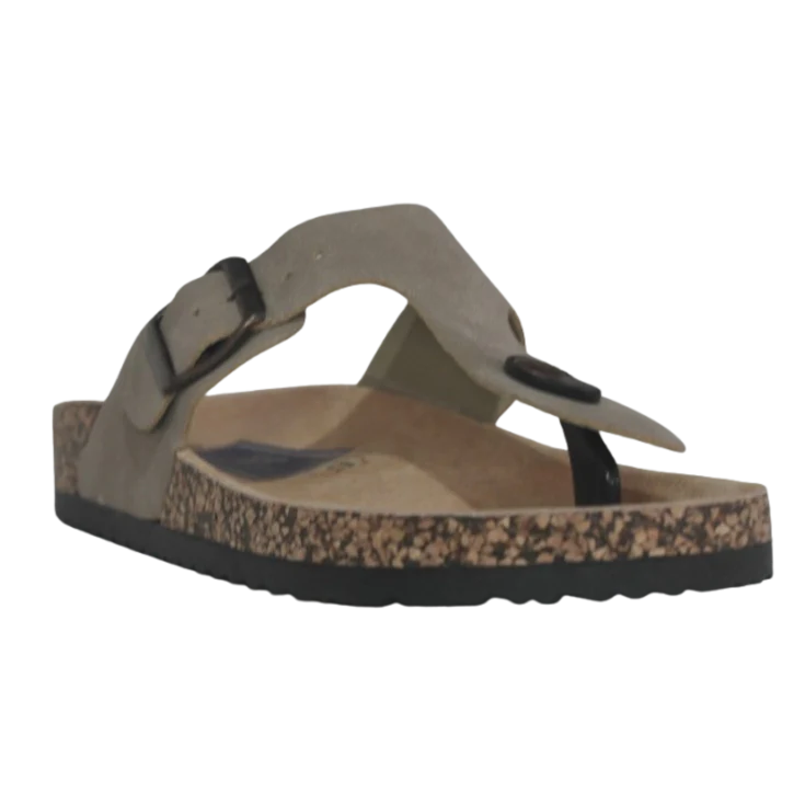 Caminar con esta sandalia es un placer gracias a la base de corcho que amortigua cada paso y a las tiras ajustables que envuelven el pie con suavidad.