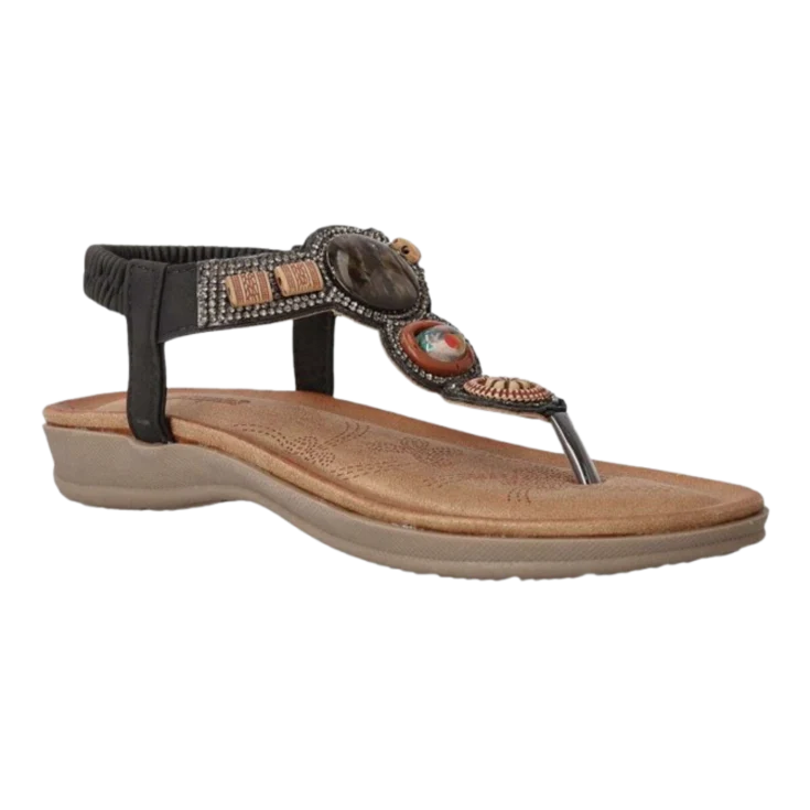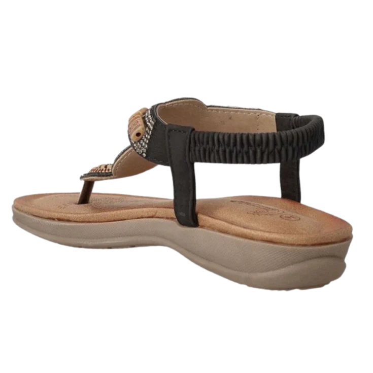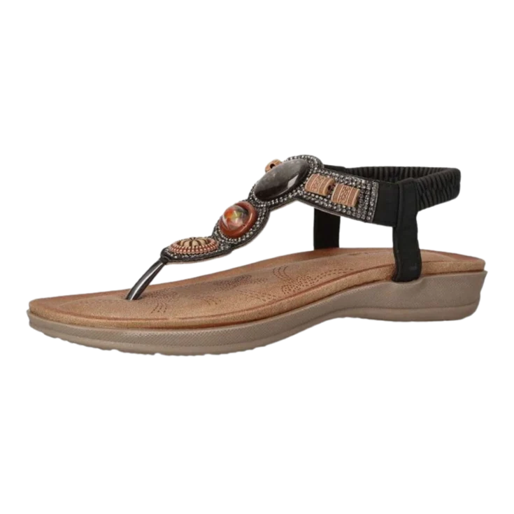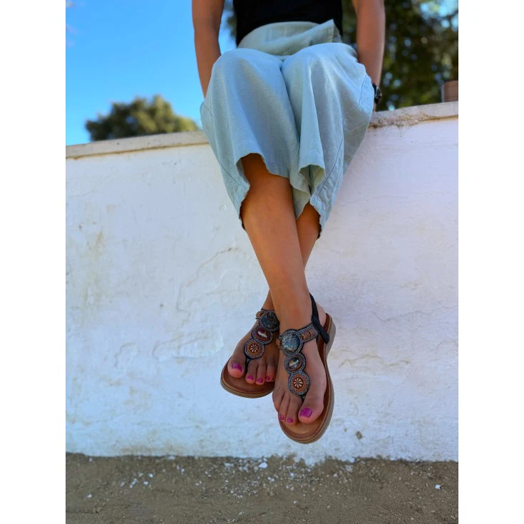 El negro envuelve el pie con sobriedad, aportando una presencia discreta y elegante.