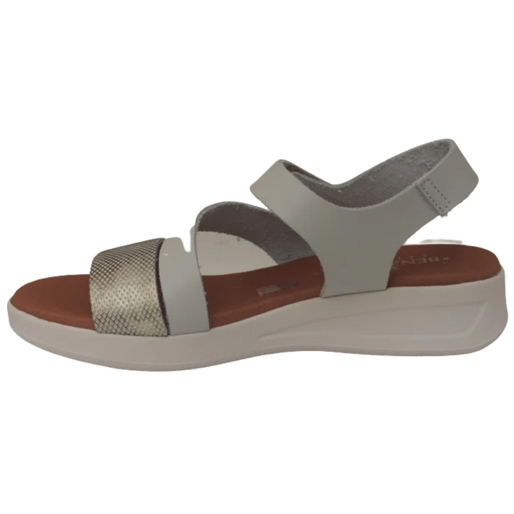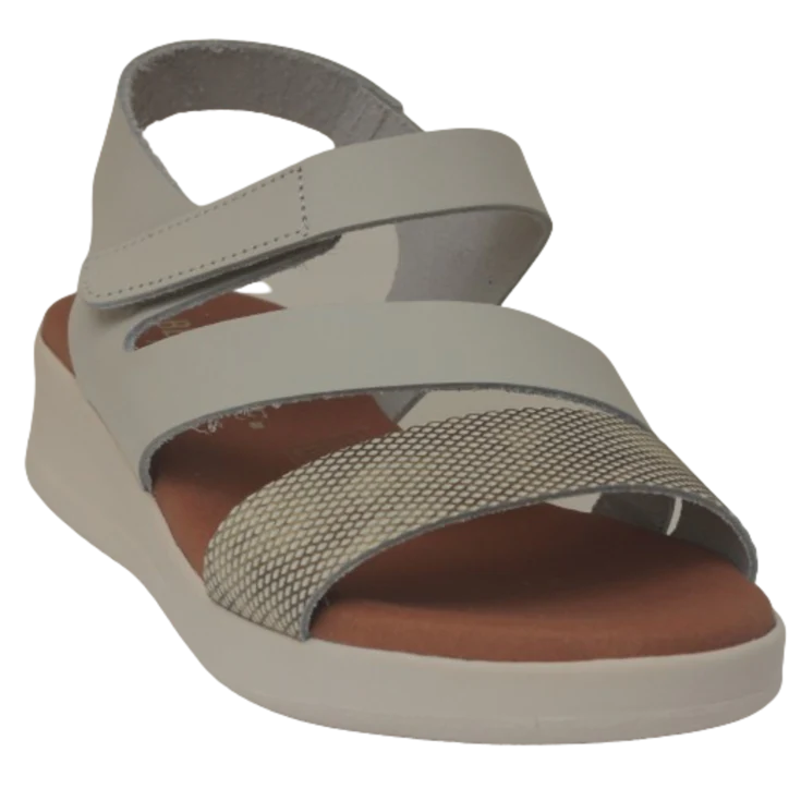 Sandalia Mercedes, modelo en color hielo con diferentes tiras cruzadas y una tira delantera con diferente tonalidad, cierre de velcro al tobillo, esta sandalia esta diseñada pensando en la comodidad, con materiales suaves y una suela acolchada que brinda un soporte adicional a tus pies, plataforma de 2 cm y cuña de 3,5 cm