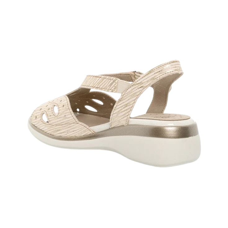 El acabado dorado capta la luz con elegancia, ofreciendo destellos que complementan cualquier look nocturno o de evento. Las tiras decorativas acarician el pie con ligereza, mientras el acolchado interno da una sensación envolvente y blanda en cada paso. La suela de goma transmite firmeza sin rigidez.