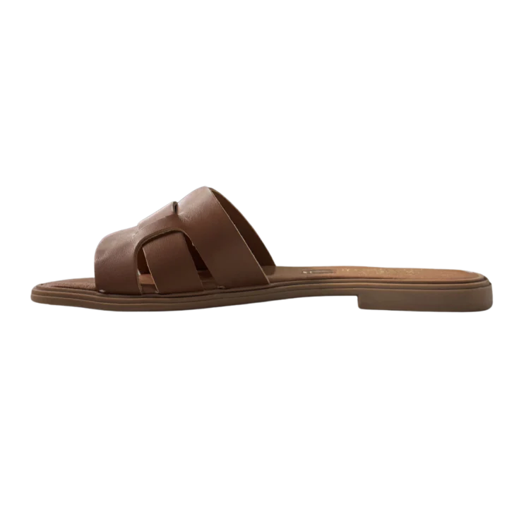 ● Sandalia plana en piel color cuero elegante y natural