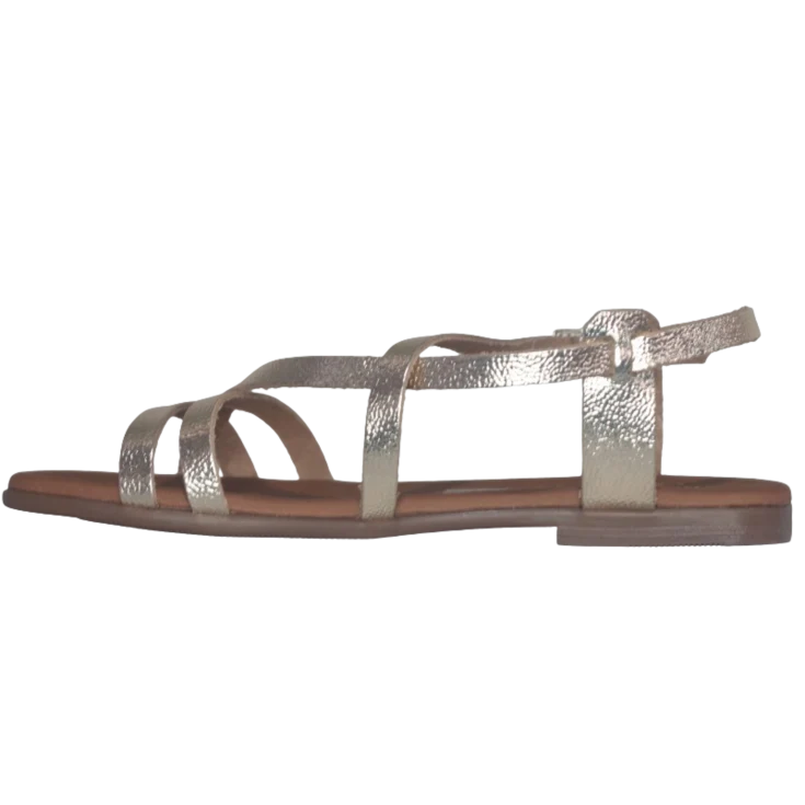 El tono champán captura la luz con sutileza, generando reflejos elegantes que realzan cualquier look. Las tiras abrazan el pie sin apretar, mientras la plantilla de gel aporta una sensación acolchada bajo la planta. Al caminar, la suela de goma asegura firmeza, incluso en superficies lisas.