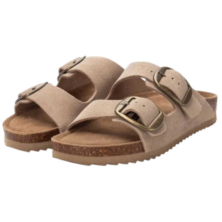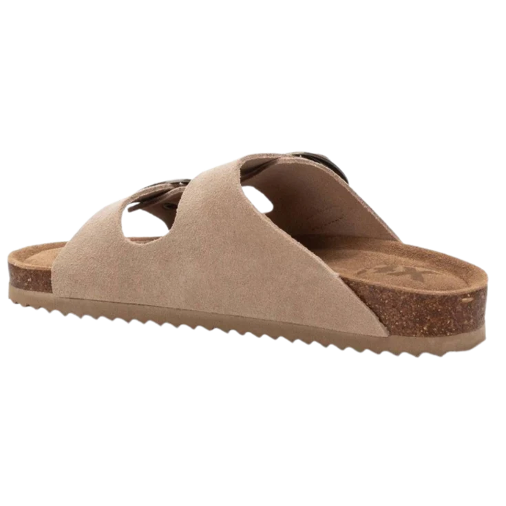 Sandalia Plataforma Serraje Beige, modelo de la marca XTI en color beige, ideal para quienes buscan comodidad y estilo en su día a día. Su diseño de doble tira ajustable con hebillas metálicas permite un ajuste perfecto al pie. Fabricada en serraje, aporta un toque sofisticado y natural. La suela de corcho con plataforma proporciona una pisada cómoda y ligera.