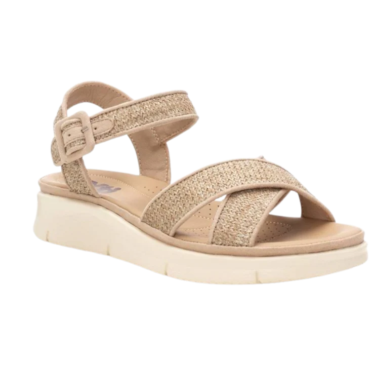 Diseñada para el máximo confort, esta sandalia en tono taupe combina un diseño moderno con materiales ligeros y transpirables. Sus tiras cruzadas aportan sujeción y estilo, mientras que el cierre de hebilla en el tobillo permite un ajuste seguro y personalizado.