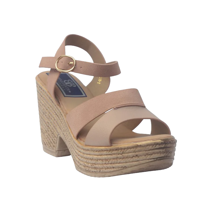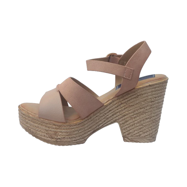 El tono nude aporta una apariencia luminosa y suave que resalta sin dominar. Al tacto, las tiras se sienten mullidas y envolventes, mientras que la estructura del tacón + plataforma distribuye el peso de forma equilibrada. Caminar con ella ofrece una sensación de firmeza acompañada de amortiguación sutil.