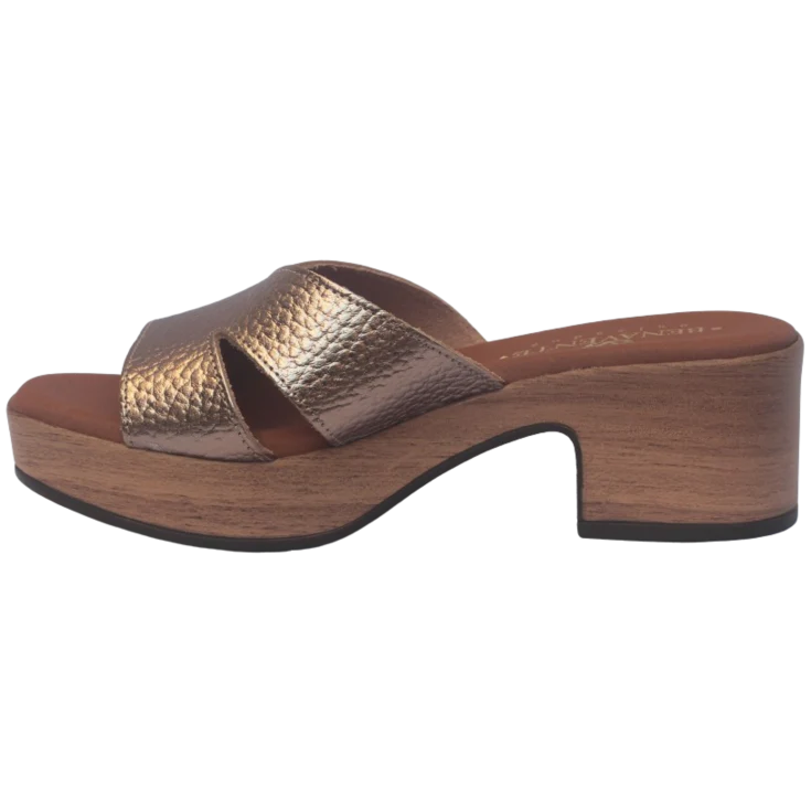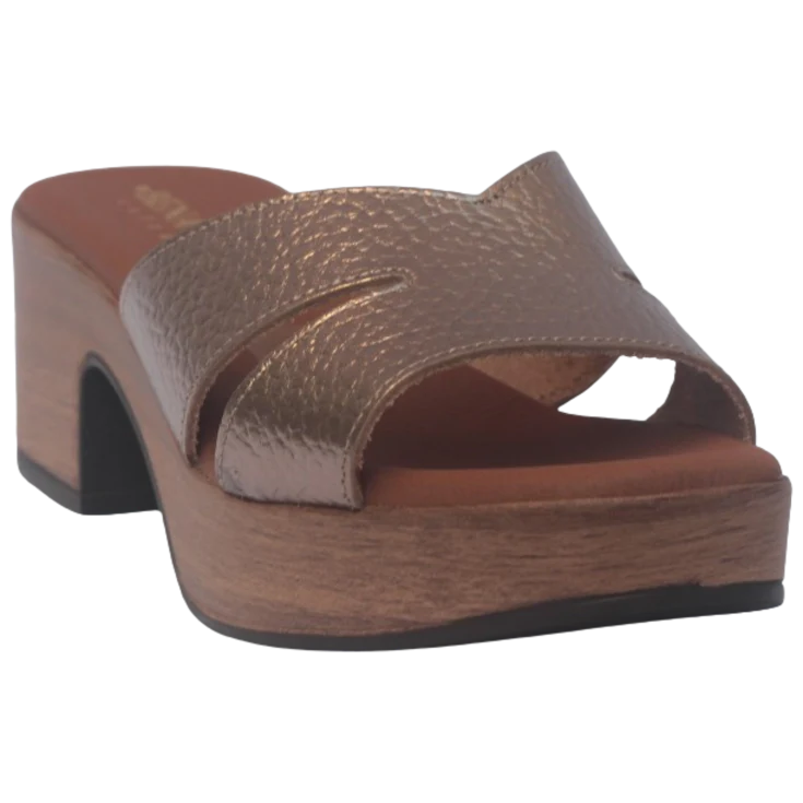 El acabado cava capta la luz con destellos cálidos y elegantes. Las tiras cruzadas envuelven el pie sin apretar, mientras la plantilla amortigua el impacto de cada paso. La estructura del tacón y la plataforma colaboran para que la inclinación se sienta equilibrada y cómoda.