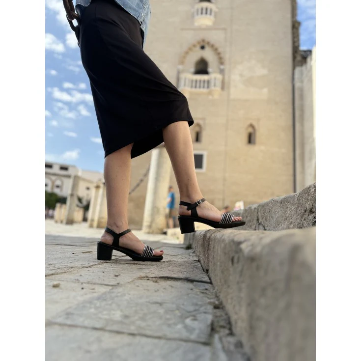 Una sandalia elegante con un diseño brillante que combina estilo y funcionalidad para quienes buscan destacar con confort.