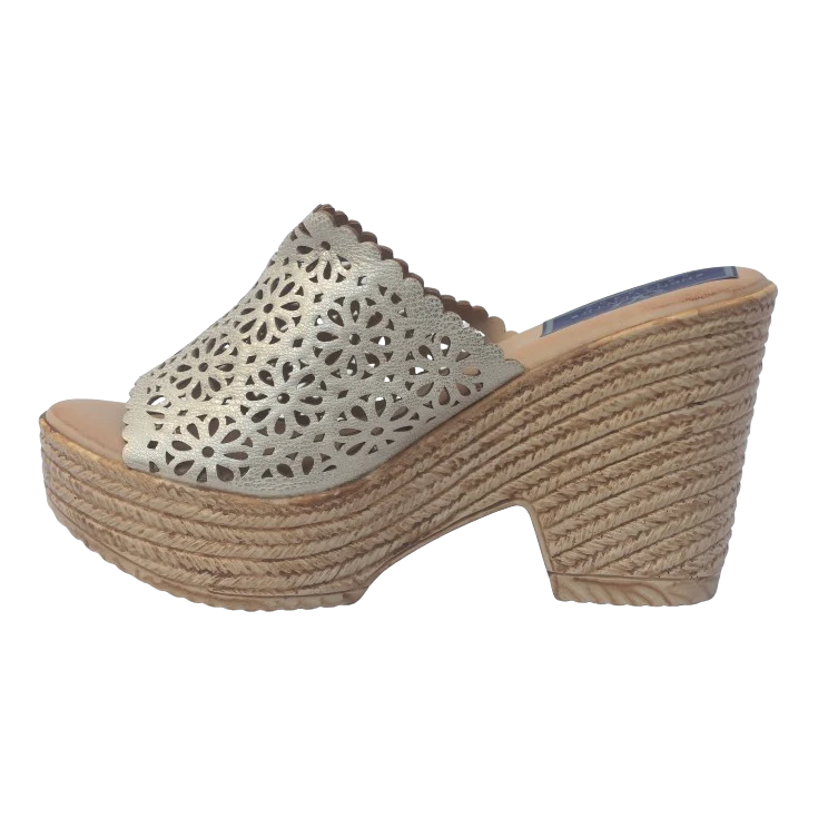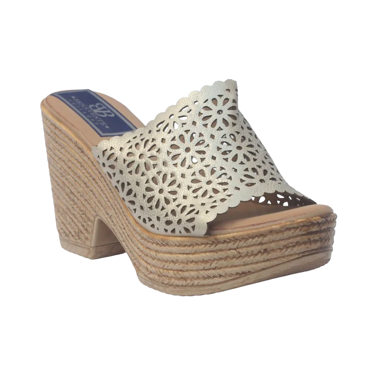 El tono platino capta la luz con elegancia, generando suaves reflejos con cada movimiento. Las tiras abrazan el pie con delicadeza, mientras que la estructura del tacón y la plataforma reducen la presión sobre la planta. Al caminar, el apoyo se siente firme y confortable.