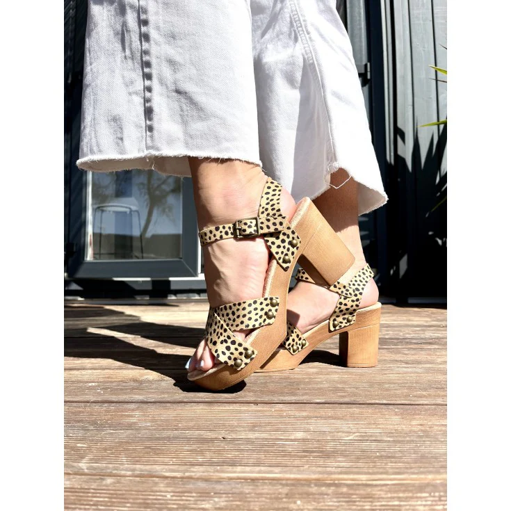Una sandalia con carácter y estilo que combina animal print con detalles sofisticados para destacar en cada paso.