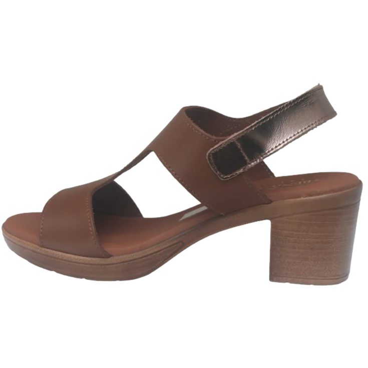 Sandalia tacon Talia, modelo en color roble, la plantilla de gel proporciona un soporte suave y amortiguado para los pies, con cierre de velcro que asegura un ajuste personalizado y fácil de poner y quitar, puntera levantada para garantizar la comodidad al caminar.