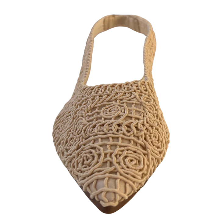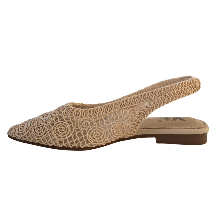 El entramado textil crea una textura ligera y transpirable que envuelve el pie con suavidad. El tono beige aporta una sensación cálida y natural, evocando días soleados, tejidos artesanales y paseos tranquilos.
