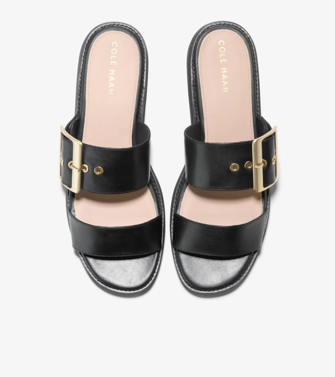 - Parte superior de cuero en negro; herrajes en tono dorado