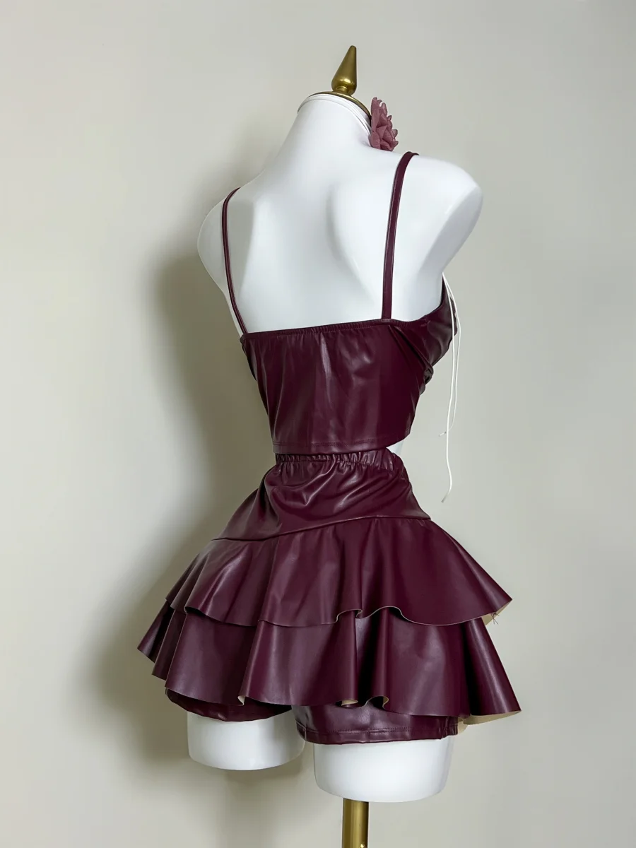 - 2 piezas : FALDA CON SHORT INTERIOR + TOP CON TIRANTES