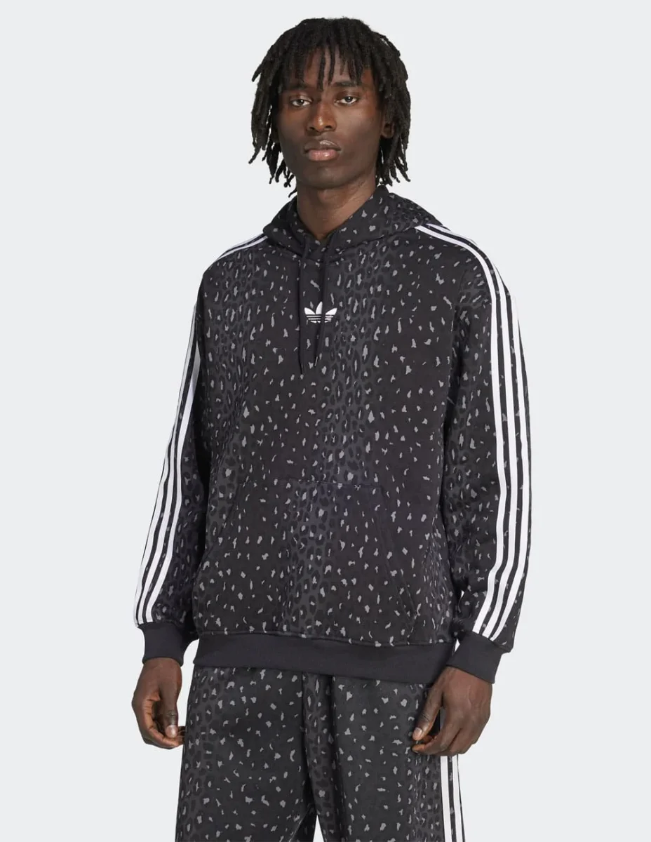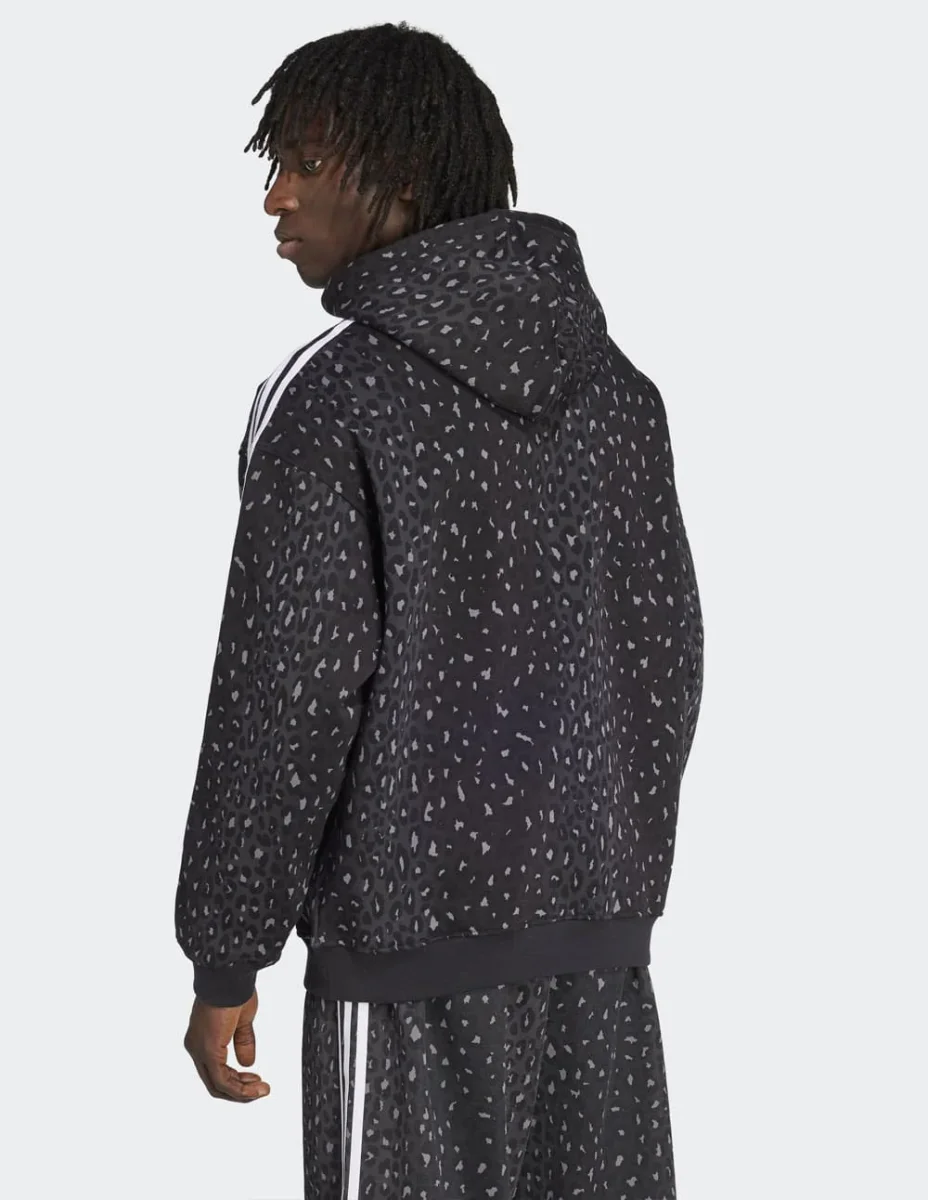 Sudadera con Capucha adidas Leo All Over Print Loose Negra Hombre