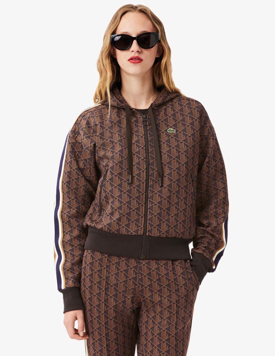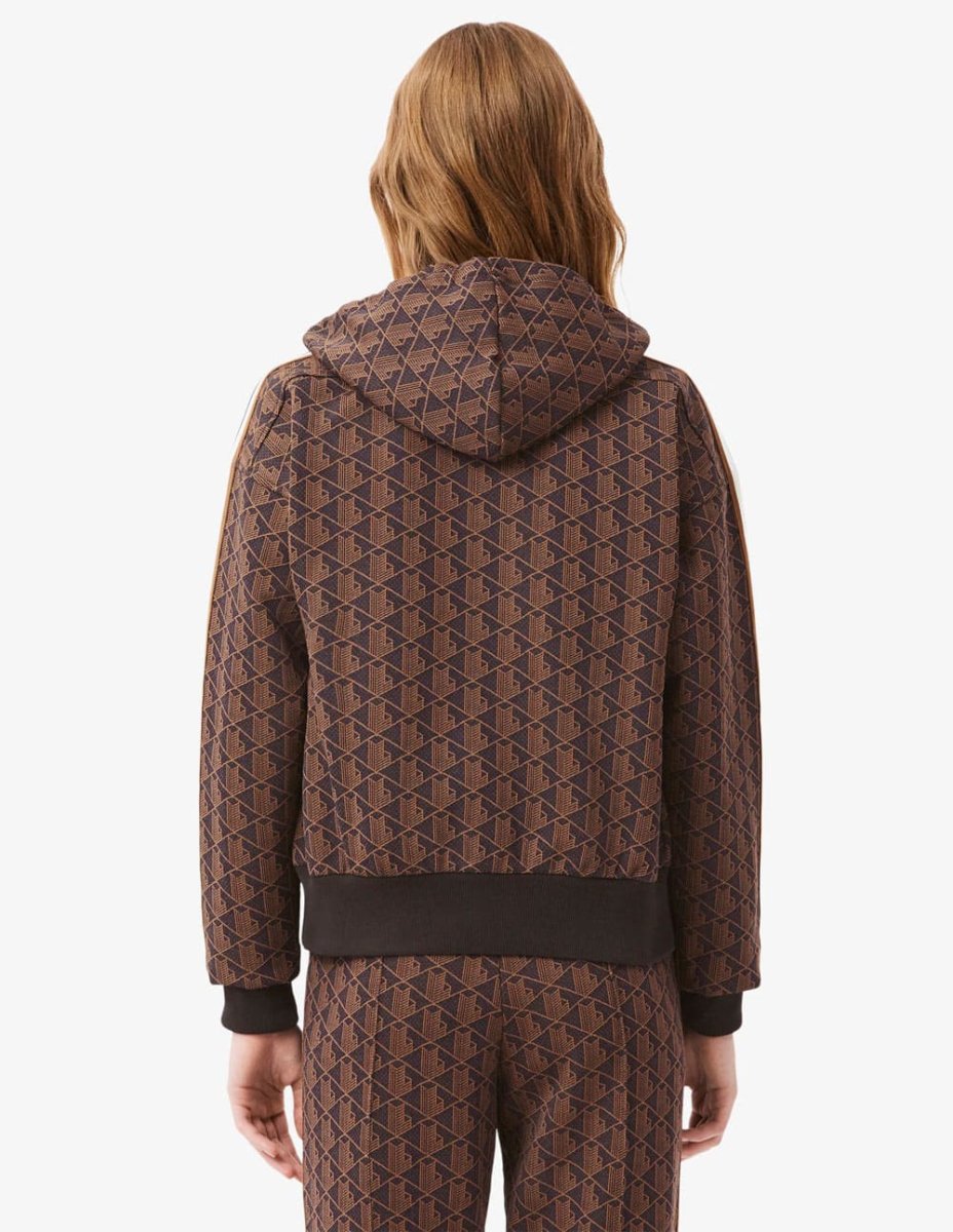 La Sudadera con Capucha Lacoste Logo Monogram Marrón combina estilo y confort en un diseño distintivo. Fabricada en algodón premium, presenta un patrón monogramado integral y el icónico cocodrilo bordado. Su ajuste relajado y capucha ajustable la convierten en una prenda versátil ideal para looks urbanos y contemporáneos.