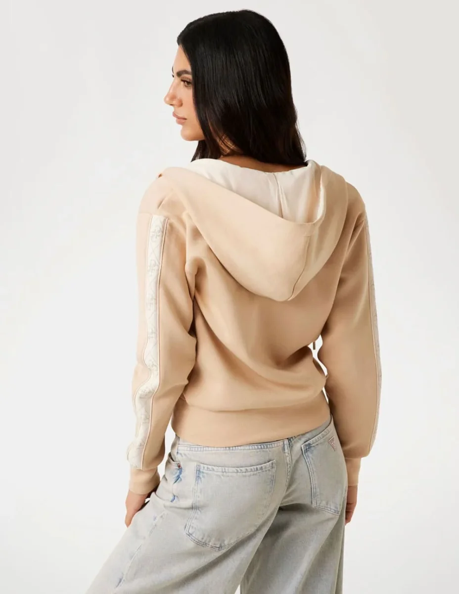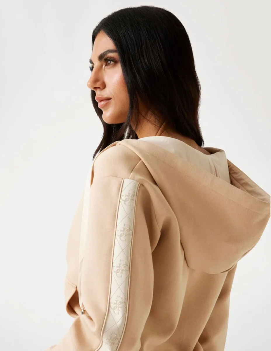 La Sudadera GUESS de Neopreno con Capucha Beige ofrece un diseño moderno y sofisticado con un toque deportivo. Confeccionada en tejido de neopreno de alta calidad, proporciona confort, elasticidad y durabilidad. Ideal para looks urbanos y casuales, combina estilo contemporáneo con la elegancia característica de la marca en cada detalle.