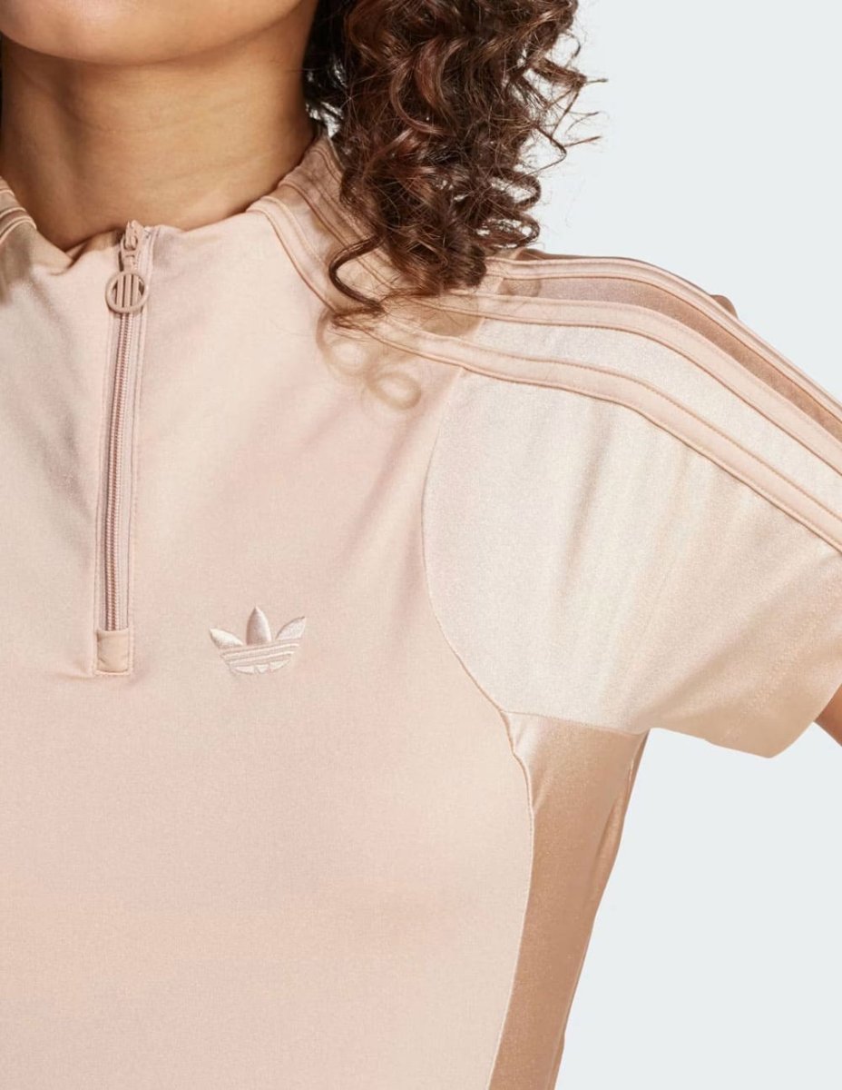 El top adidas Zip-Up Beige combina estilo y funcionalidad con su diseño ajustado y cremallera frontal. Confeccionado en materiales de alta calidad, garantiza comodidad y libertad de movimiento. Perfecto para un look deportivo o casual, es una prenda versátil que aporta un toque moderno a cualquier outfit.