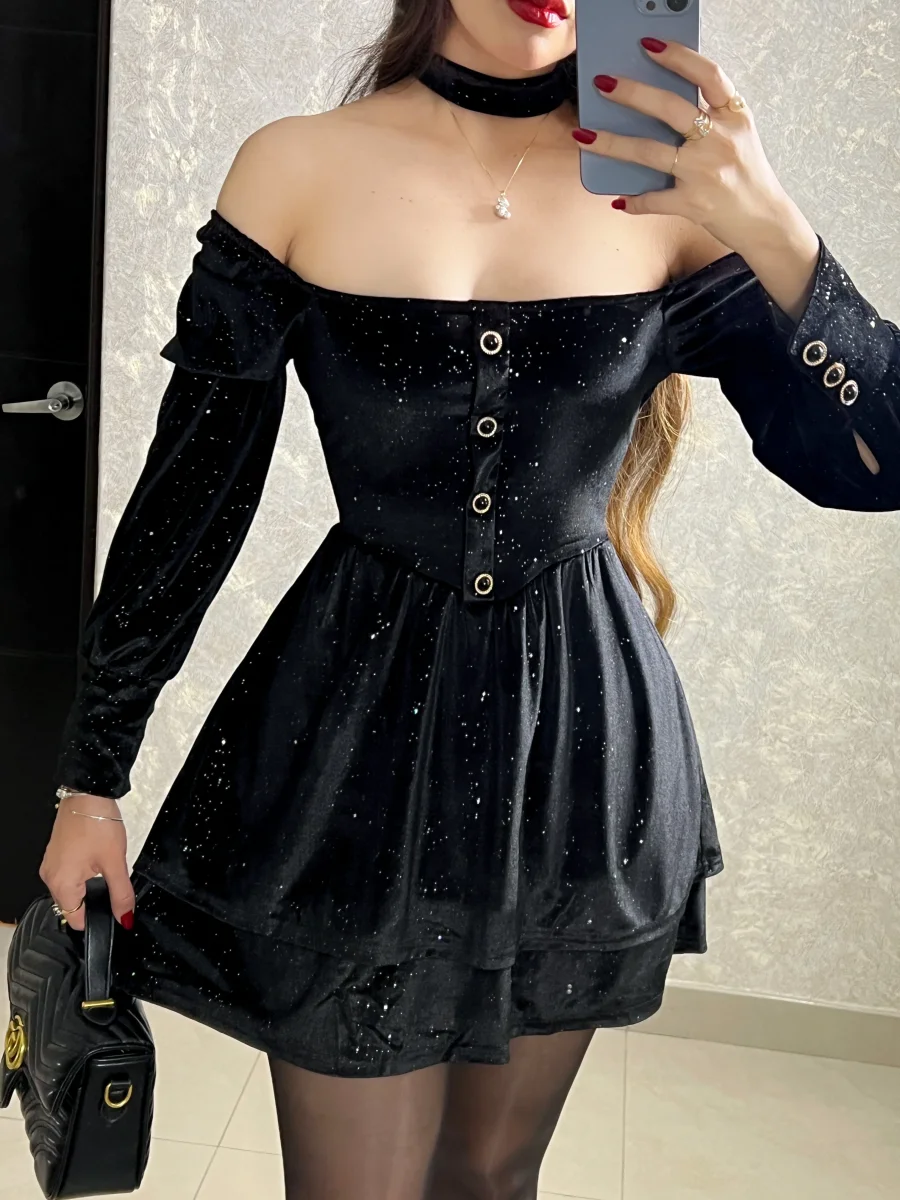 VESTIDO NEGRO CON DESTELLOS