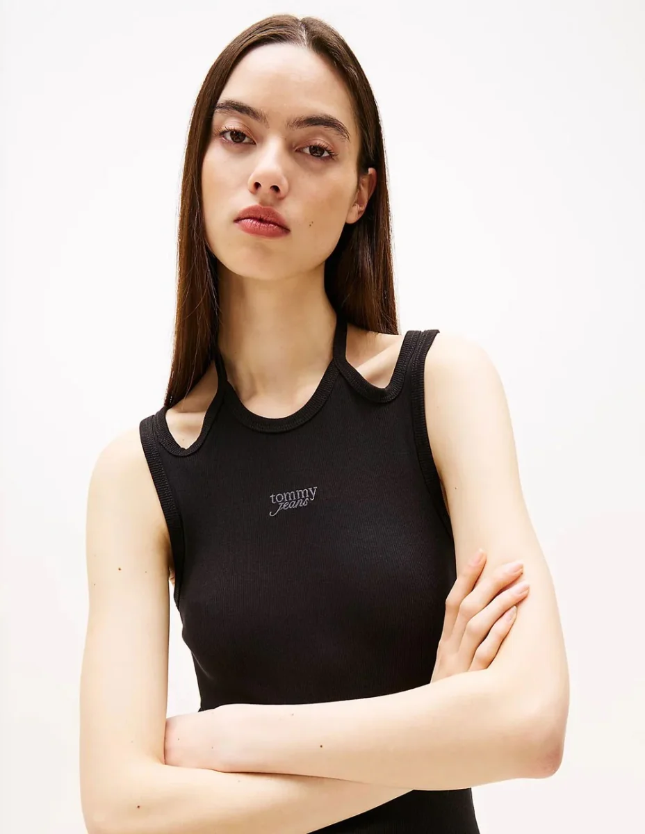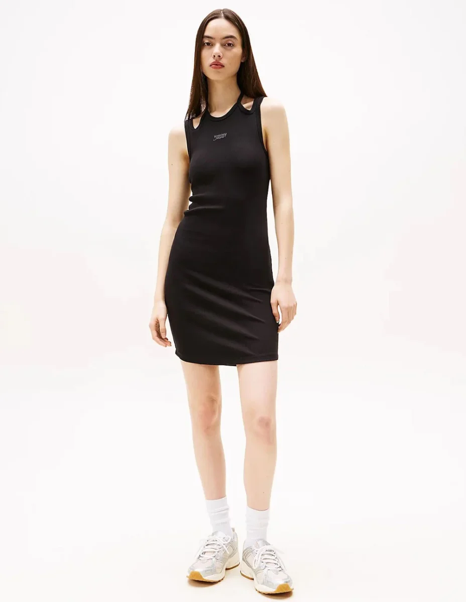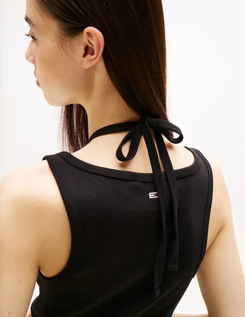 El Vestido Tommy Jeans con Tiras Anudables Negro destaca por su diseño femenino y versátil. Las tiras ajustables permiten un ajuste personalizado, mientras que su corte favorecedor realza la silueta. Ideal para días cálidos, combina comodidad y estilo en una prenda perfecta para looks casuales con un toque moderno.