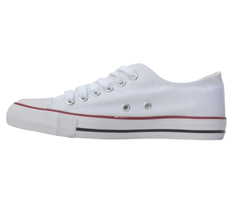 Al calzarlas, sentirás cómo la lona abraza el pie de forma ligera y fresca mientras la puntera reforzada aporta sensación de seguridad. El desfase suave de la plataforma crea una elevación sutil que no compromete la estabilidad, y la suela con agarre transmite firmeza en cada paso. El blanco limpio aporta un aire moderno que completa el look.