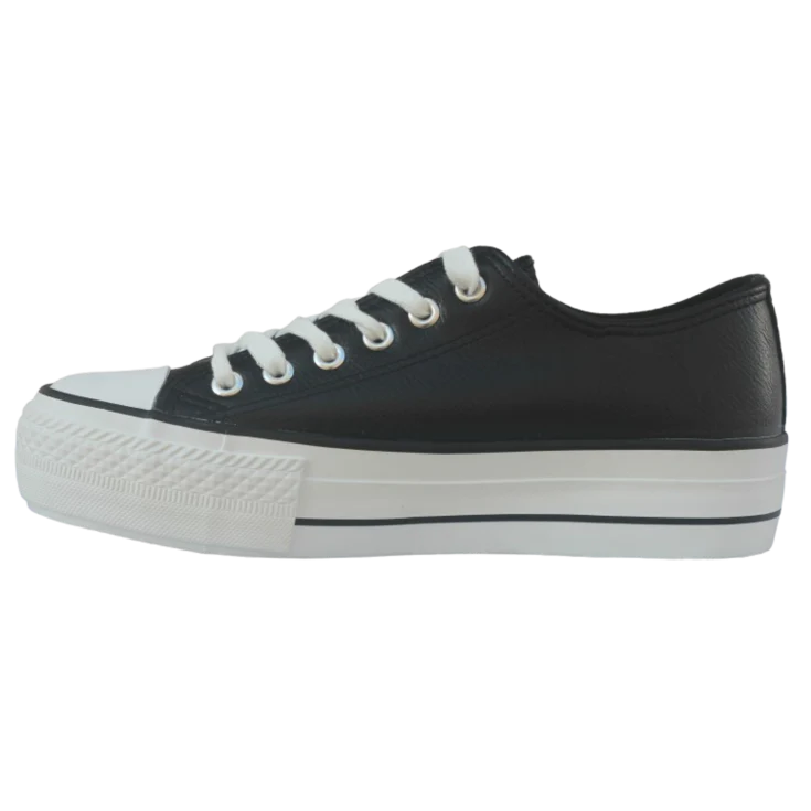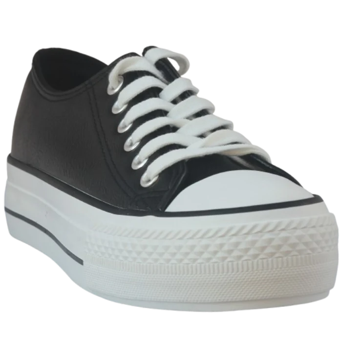 Zapatilla deportiva Manica, modelo de polipiel en color negro, cierre de cordones planos en color blanco, plataforma de 3,5 cm, modelo con puntera redonda y levantada para garantizar la comodidad.