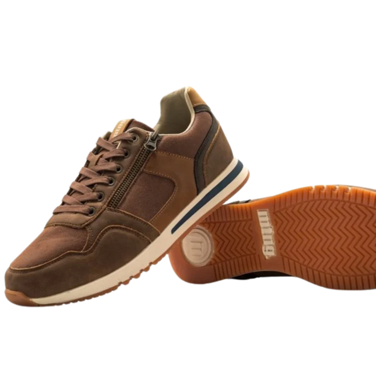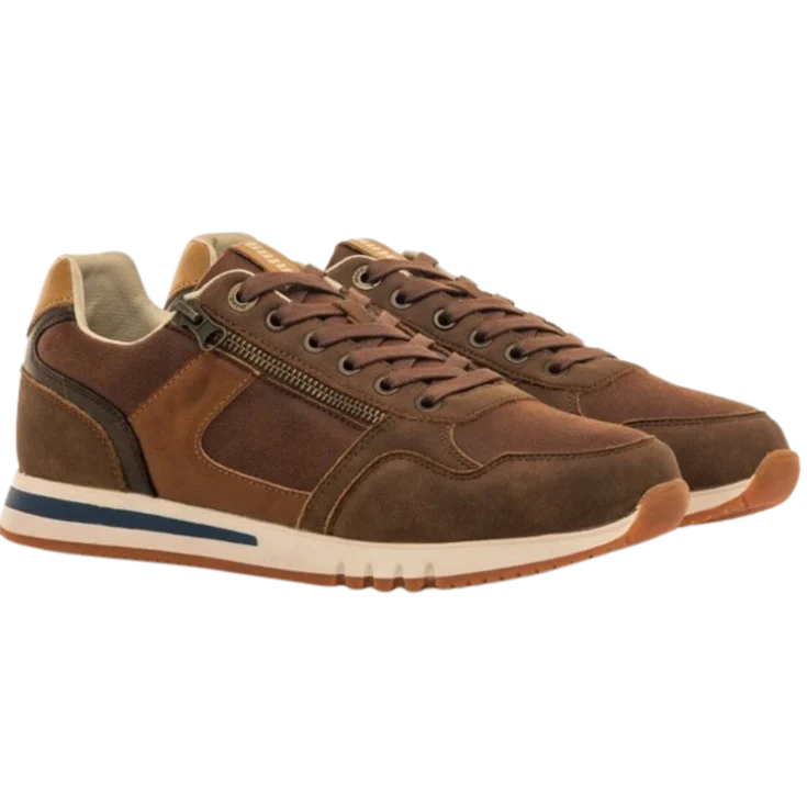 La zapatilla deportiva Buner Cuero combina estilo urbano y funcionalidad para el hombre que busca un calzado versátil. Con acabado en tono cuero cálido, paneles de textura variable y suela de goma alzada, este modelo ofrece presencia visual sin renunciar a la comodidad.