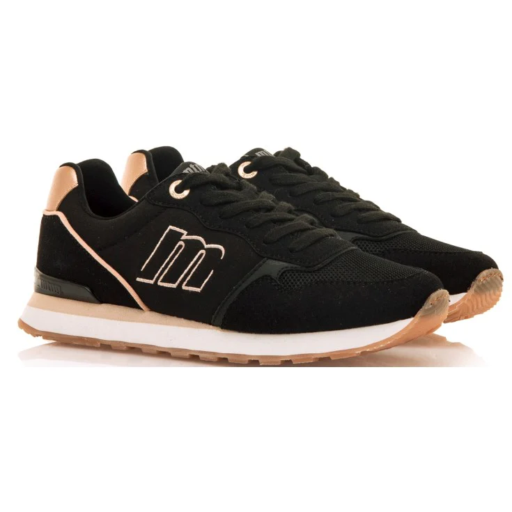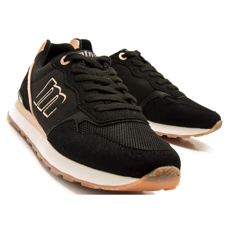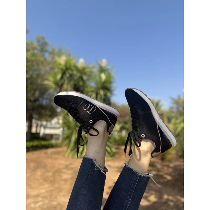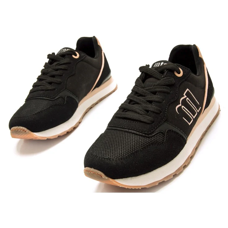 Descubre la Zapatilla Deportiva Mustang Naisy en color negro con detalles en oro rosado, perfecta para quienes buscan comodidad y estilo en un solo diseño. Su acabado combina materiales de alta calidad, suela ligera y plantilla acolchada para brindarte el máximo confort durante todo el día.