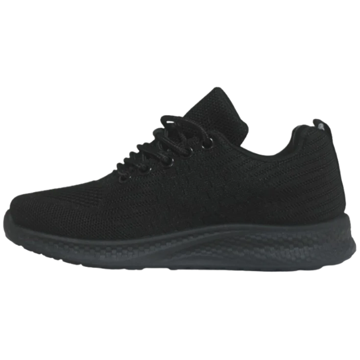 Zapatilla deportiva Nexa en color negro, una opción funcional y cómoda para el día a día. Su diseño con cordones aporta sujeción, mientras que su tejido técnico permite una excelente transpiración y adaptabilidad al pie.