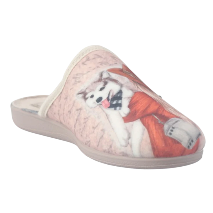 Una zapatilla cerrada en tono crudo que combina comodidad, estilo y funcionalidad para tus momentos de descanso en casa.