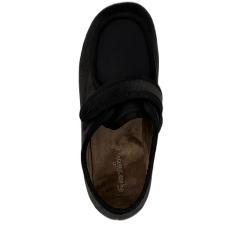 Su combinación de tejido afelpado y copete de licra proporciona libertad de movimiento y un ajuste perfecto incluso para pies delicados o con necesidades especiales de amplitud. Un modelo funcional, discreto y ultracómodo.