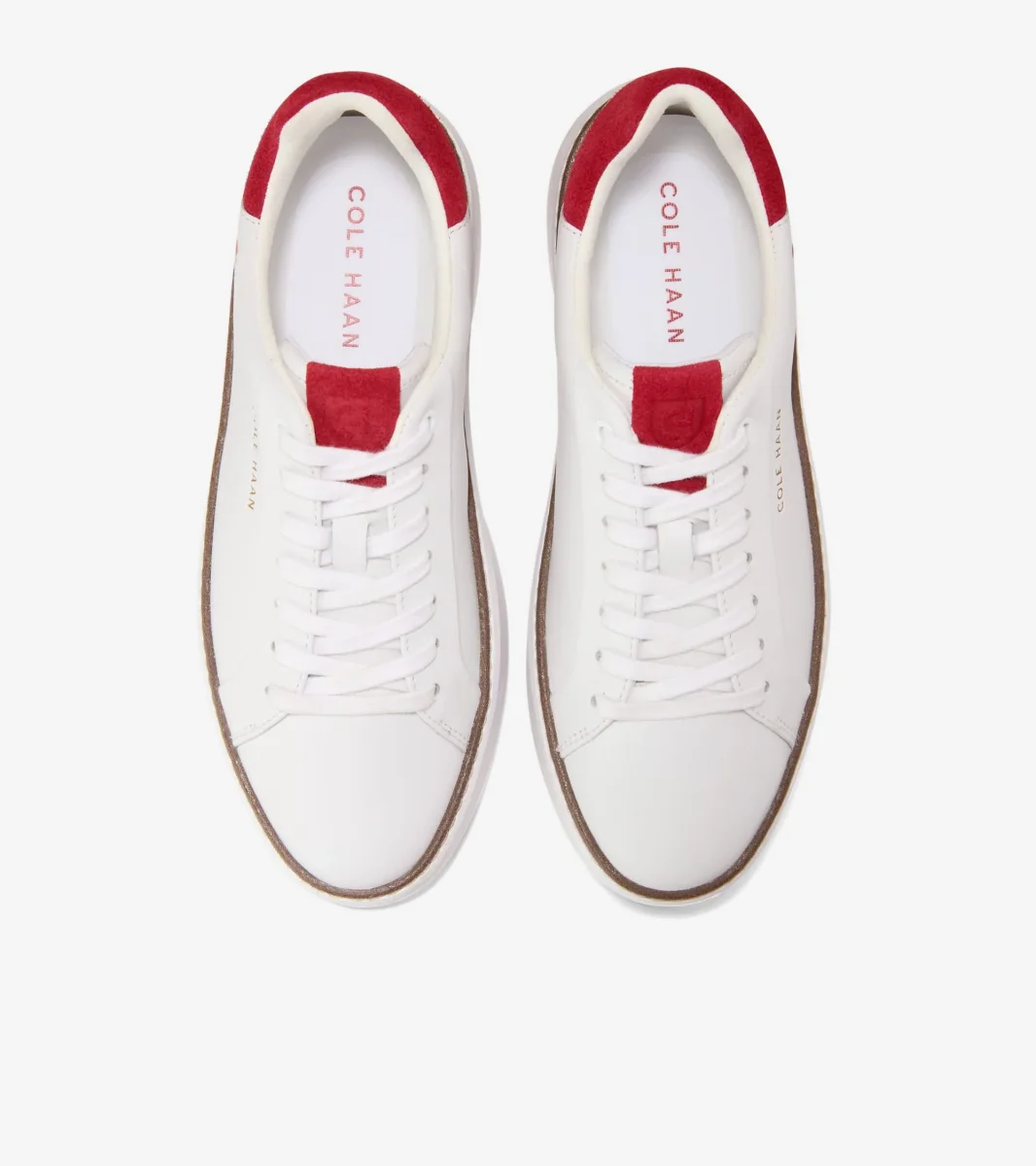 - Parte superior de piel en blanco y rojo Río; sistema de cordones de siete ojales.