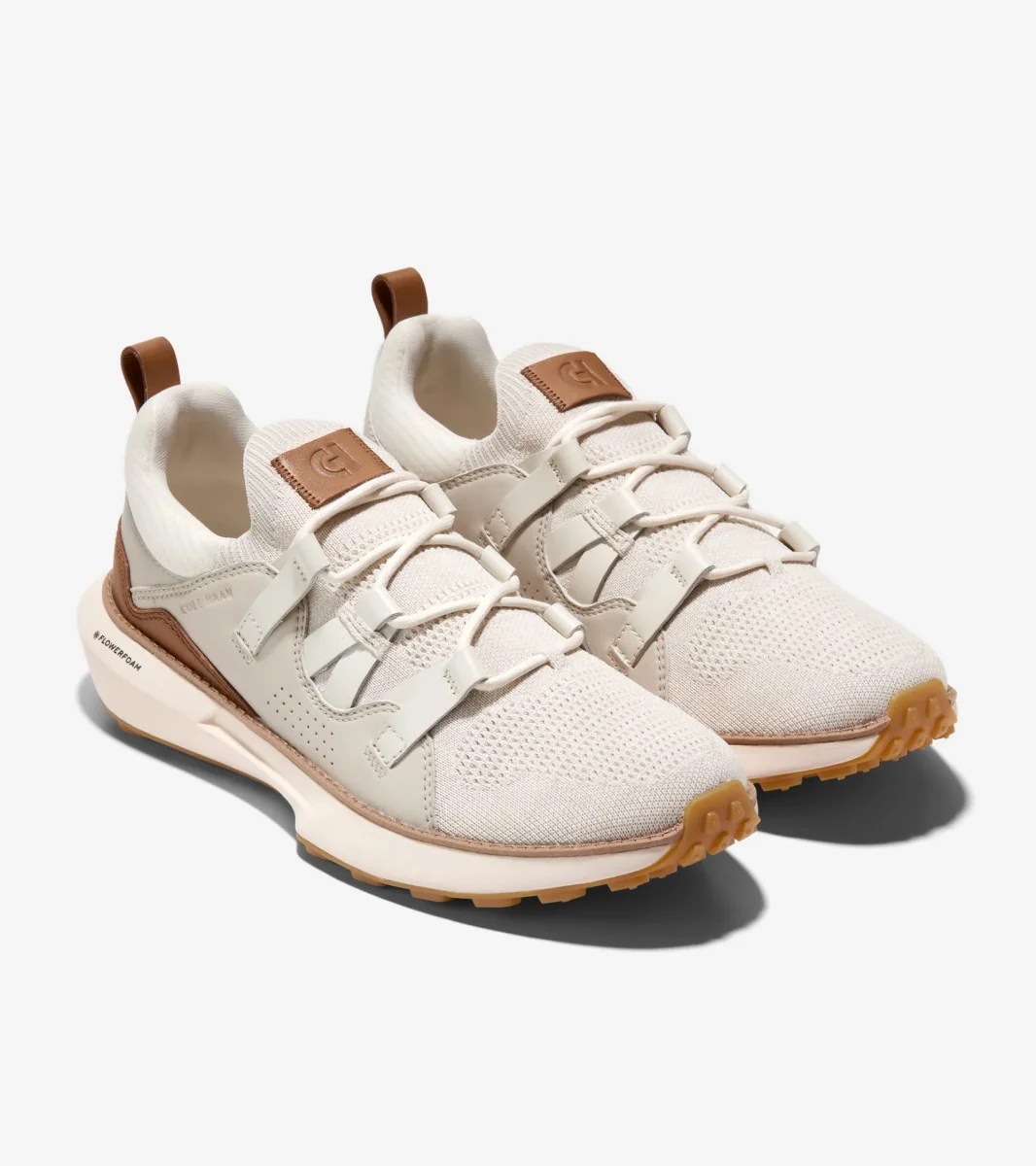 - Parte superior tejida Stitchlite™ en color Marfil con detalles de cuero en Plata y Toffee Dorado; sistema de cordones de estabilizadores