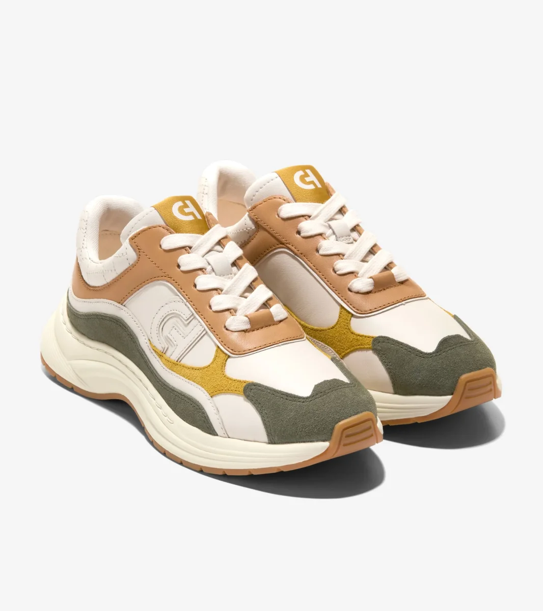- Parte superior de cuero y ante en colores Marfil, Miel, Galleta y Oliva Noche; sistema de cordones de cinco ojales