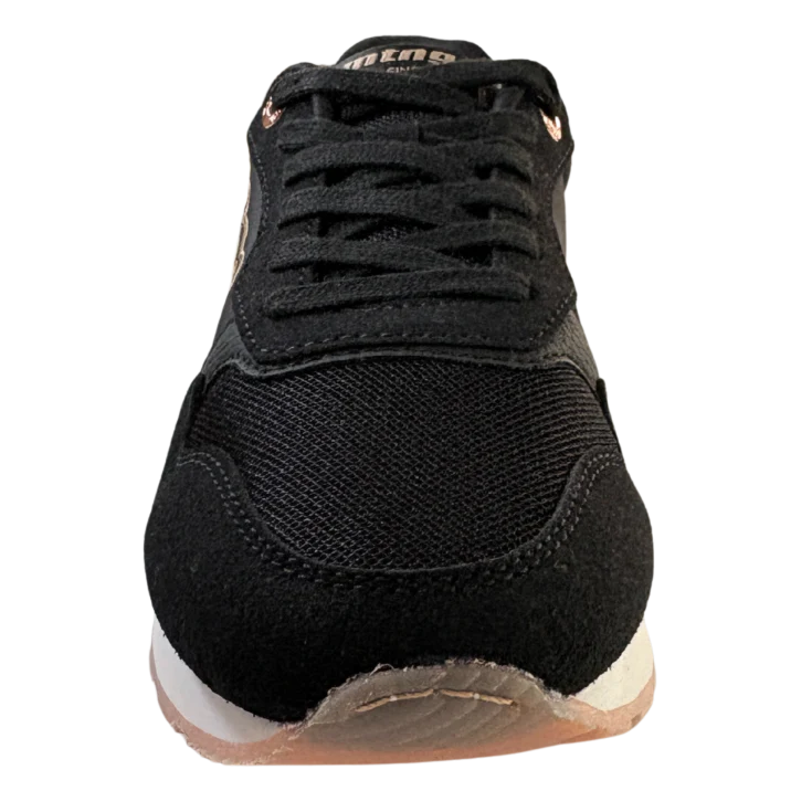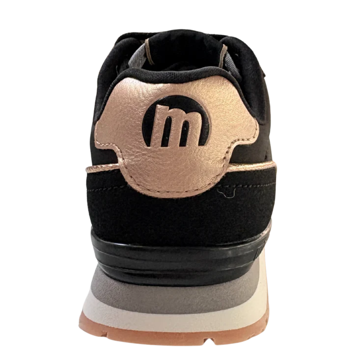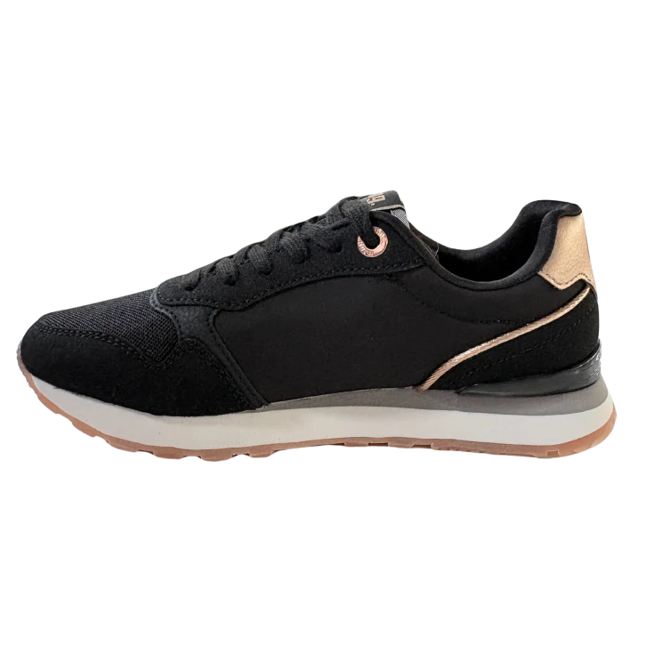 as Zapatillas Deportivas Mustang C59306 combinan un diseño urbano sofisticado con la comodidad que necesitas para el día a día. El contraste del negro profundo con delicados detalles en oro aporta un toque elegante y actual, ideal para quienes buscan destacar con un estilo moderno sin renunciar al confort.