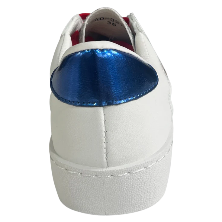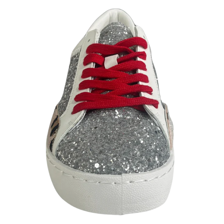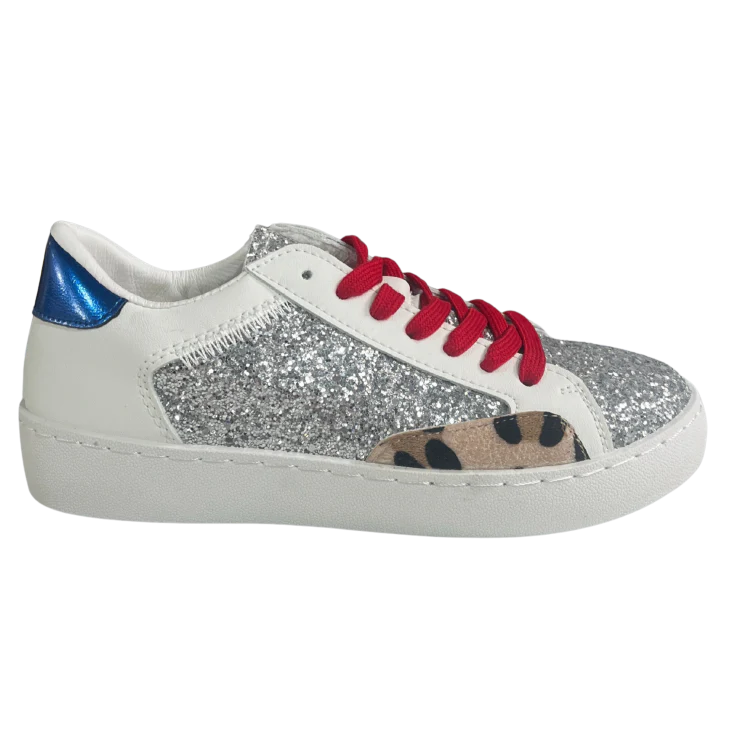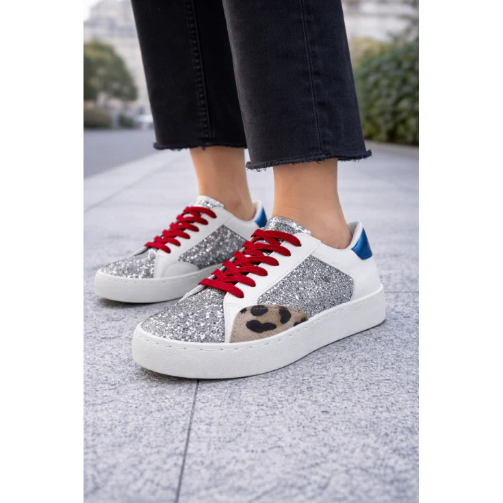 Las Zapatillas Deportivas Serenna Azul combinan brillo, color y comodidad en un diseño urbano con mucha personalidad. Los detalles en glitter plata junto a los cordones rojos y el acento azul aportan un contraste moderno y atrevido, ideal para mujeres que quieren destacar sin renunciar al confort diario.