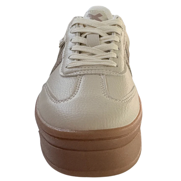 Estas zapatillas deportivas XTI para mujer en color beige destacan por su diseño moderno y femenino, pensado para acompañarte con estilo y comodidad en tu día a día. Su estética urbana con suela plataforma aporta un toque actual que eleva cualquier look casual sin renunciar al confort.