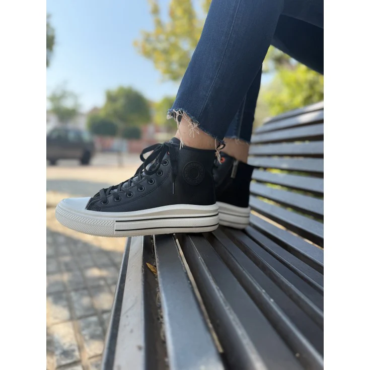 Las Zapatillas XTI Nube en color negro llegan para revolucionar tu estilo urbano. Su diseño tipo botín con acabado en polipiel, combinado con una suela blanca chunky de doble línea, aporta un aire moderno y rompedor que no pasa desapercibido. Un modelo que mezcla la comodidad de una deportiva con la personalidad de un calzado de calle.