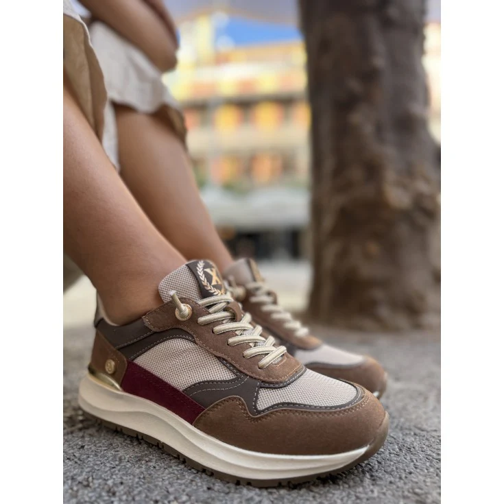Las Zapatillas Deportivas XTI Taupe 144206 combinan comodidad, estilo urbano y un diseño moderno que se adapta a cualquier look diario. Su mezcla de tonos taupe, beige y burdeos aporta un contraste elegante y actual, perfecto para quienes buscan un calzado versátil y con personalidad.