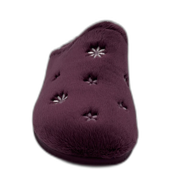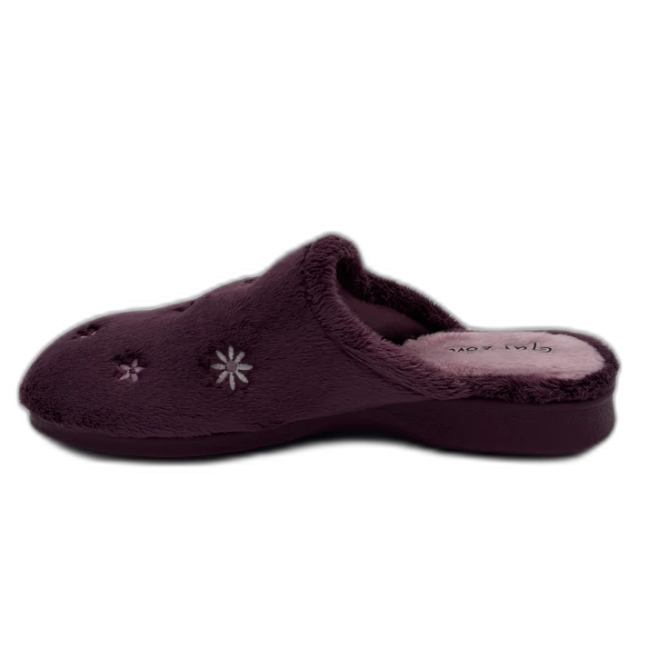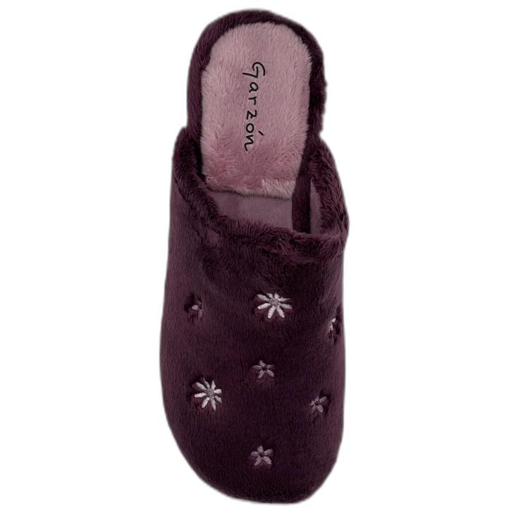 Estas zapatillas tipo mule combinan un diseño práctico sin talón con un interior mullido que aporta una sensación de abrigo instantáneo. El exterior en tono mora, decorado con pequeñas margaritas bordadas, les da un estilo dulce y relajado ideal para el hogar. Incorporan una plataforma de 1 cm y una cuña de 3 cm, que elevan ligeramente el pie aportando mayor comodidad y una pisada más ergonómica sin renunciar al confort.