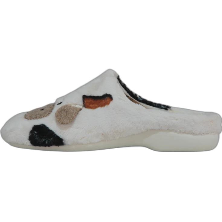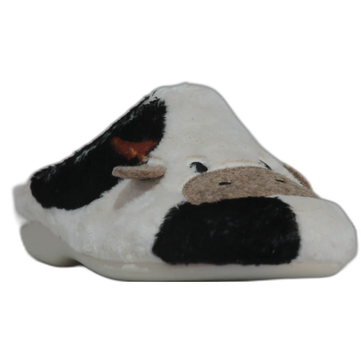 Zapatillas de casa estilo mule, confeccionadas en un tejido extra suave efecto peluche en tono arena, con detalles en 3D que recrean simpáticas vacas. La suela ligera y el interior cálido las hacen perfectas para mantener los pies cómodos y abrigados durante todo el invierno.